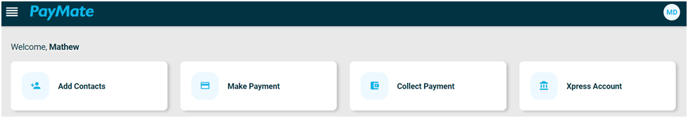 This section of dashboard screen covers some easy shortcuts to access the basic features of your business account like Adding a Contact, Booking a Payment, Sending Collection Request, and a quick check on your Xpress account details.