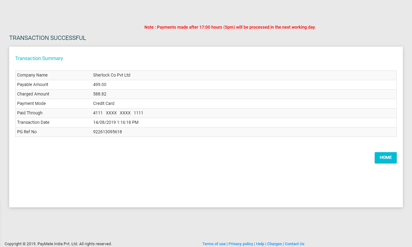 Upon successful payment, your respective subscription plan will be activated. Screenshot of a successful transaction is given below: