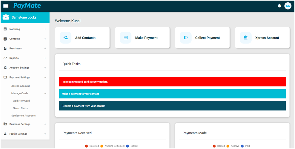 Using Payment Settings, you can top-up your express account to make instant payments, view balance, add and manage your cards and verify/change your settlement accounts. Payment settings are made available by navigating to Menu>Payment Settings. Attached screenshot below gives reference on Payment Settings.